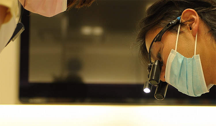 精確性の高い治療精確性の高い治療のためにスタッフは全員ルーペ(拡大鏡)を装着。さらに外科治療の際はCTやマイクロスコープ(顕微鏡)によって綿密に患部の状態を確認して処置を行ないます。
